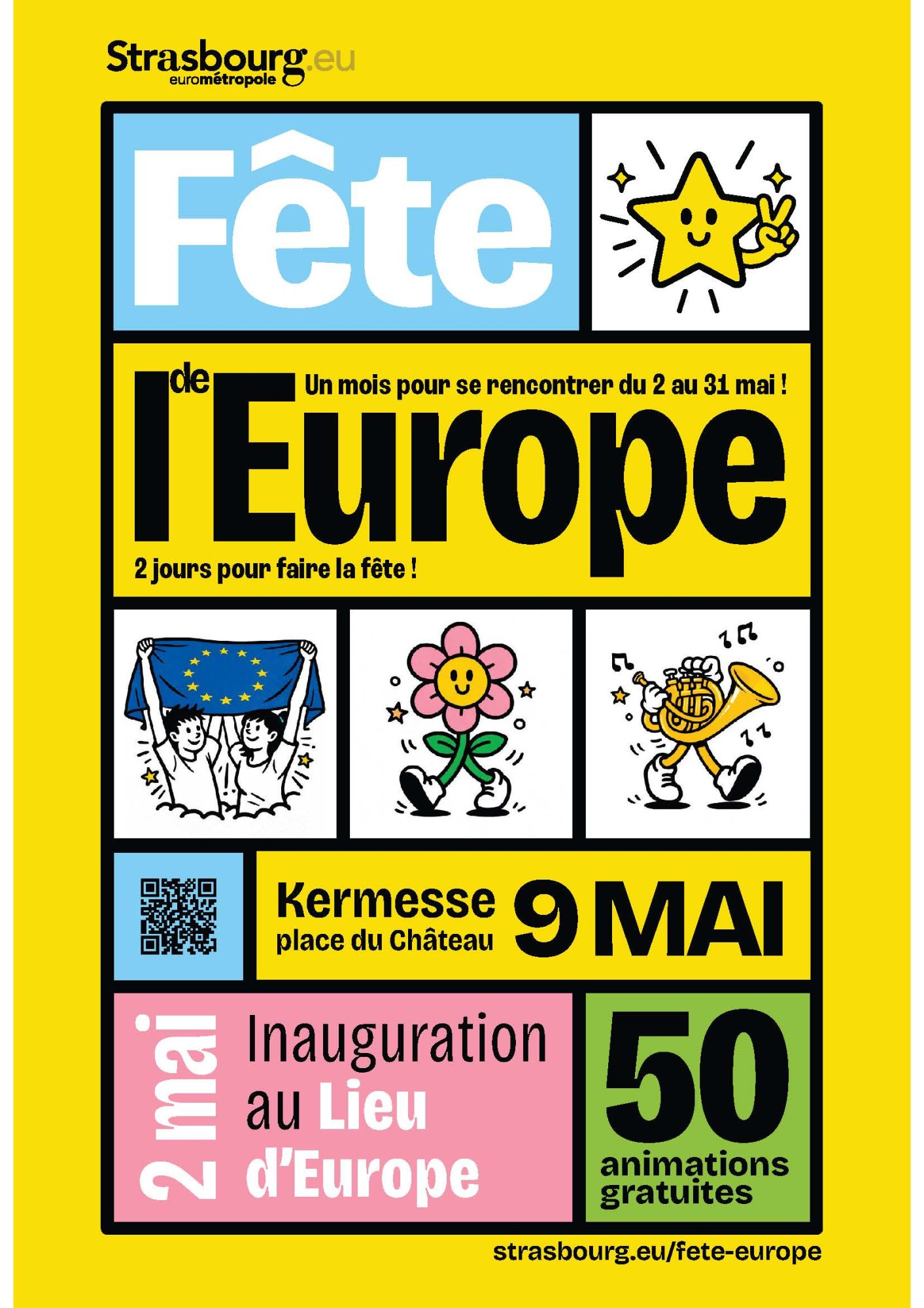 Chaque mois de mai, Strasbourg et l’Eurométropole célèbrent la Fête de l’Europe avec près de 50 animations. L’Espace Européen Gutenberg participe à la kermesse de la Fête de l’Europe qui se déroule le samedi 9 mai sur la Place du Château à Strasbourg à l’occasion de la Journée de l’Europe.